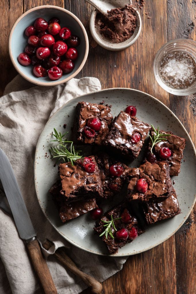 These decadent Nigella Black Forest Brownies are made with dark chocolate, dried cherries, dark muscovado sugar, fresh rosemary, and a splash of orange juice. The …